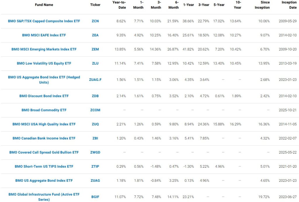 | BMO Broad Commodity ETF | ZCOM | — | — | — | — | — | — | — | — | — | 2025-10-21 |