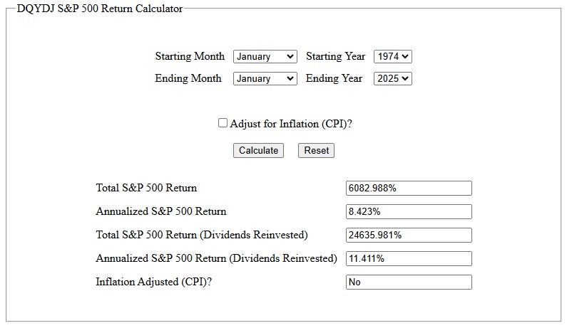 And recalculating for the last fifty years, total return is 11.411%. Clearly there is a trend here.